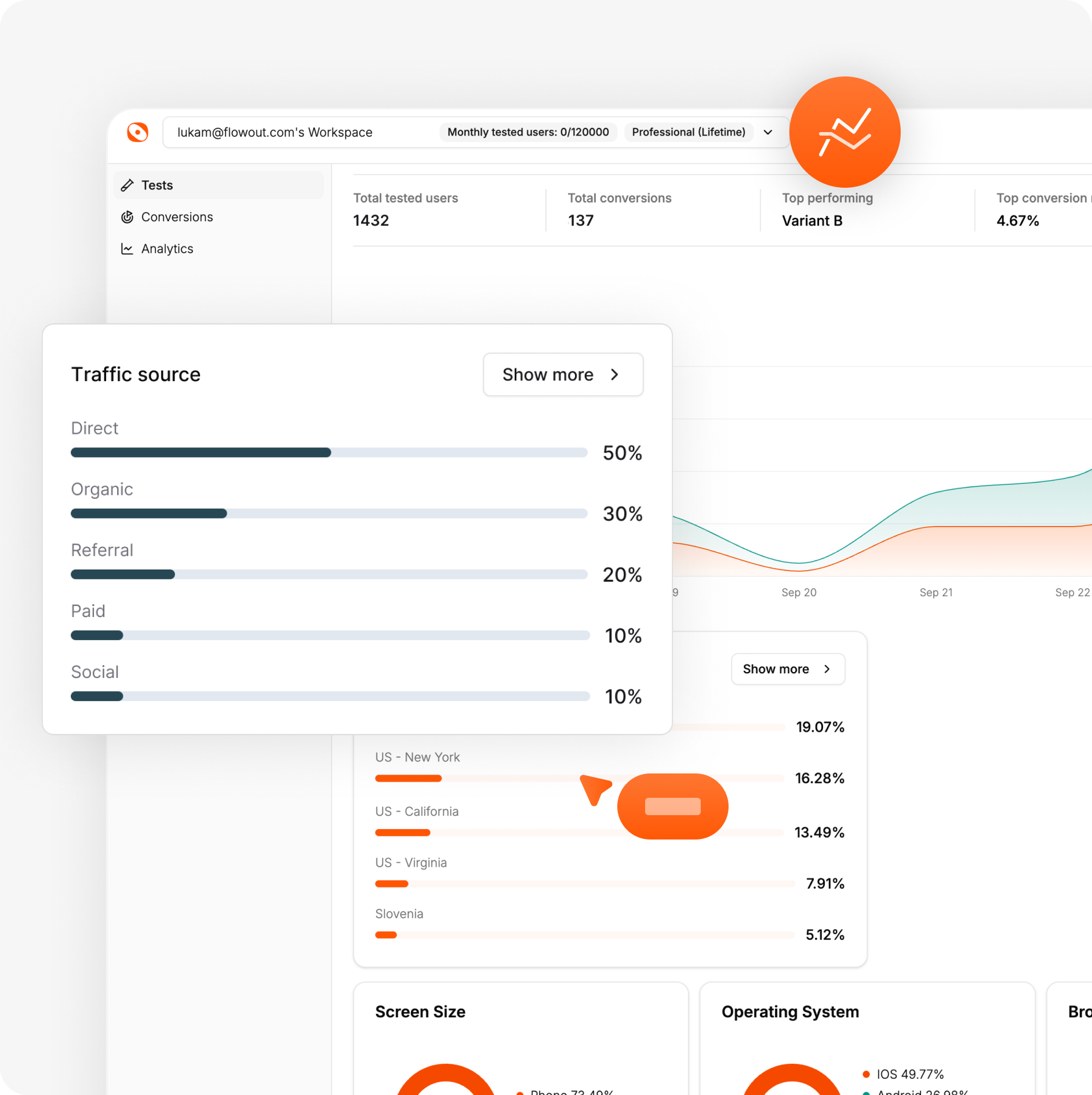 Segment your audience based on different criteria, including geolocation, device type, operating system and browser. Our dashboard provides audience segmentation capabilities, enabling you to address specific user groups and tailor your A/B tests for maximum effect.