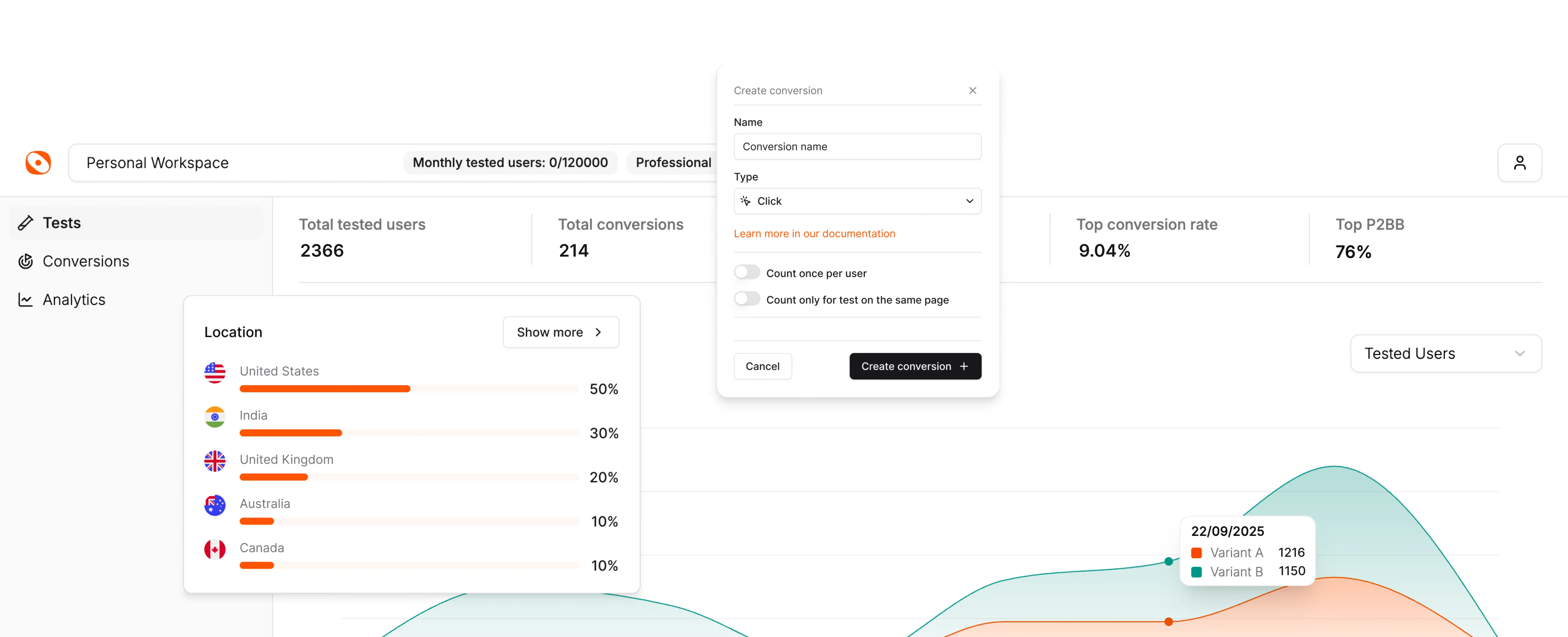 In this scenario, the original homepage (Version A) features a standard layout with a banner showcasing the latest collection. The team creates a variation (Version B) that includes a prominent call-to-action button encouraging visitors to sign up for a newsletter in exchange for a discount on their first purchase. Traffic to the website is split evenly between the two versions, and user interactions are tracked.