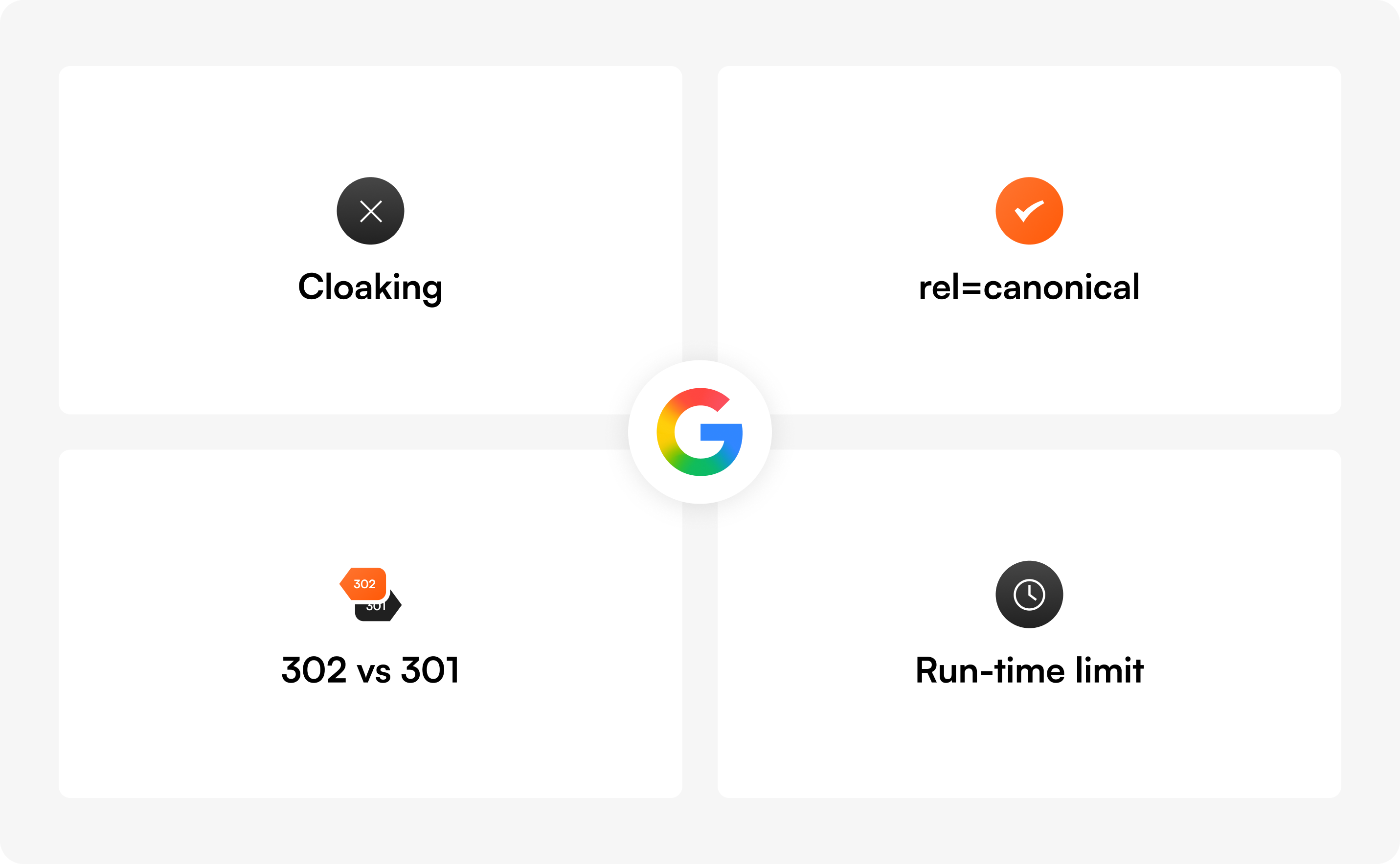 This rule is the single biggest reason to choose a testing tool that handles cloaking correctly. Server-side and client-side testing setups that route bots and users to the same content variant are safe. Setups that detect Googlebot and serve it the original page are not.