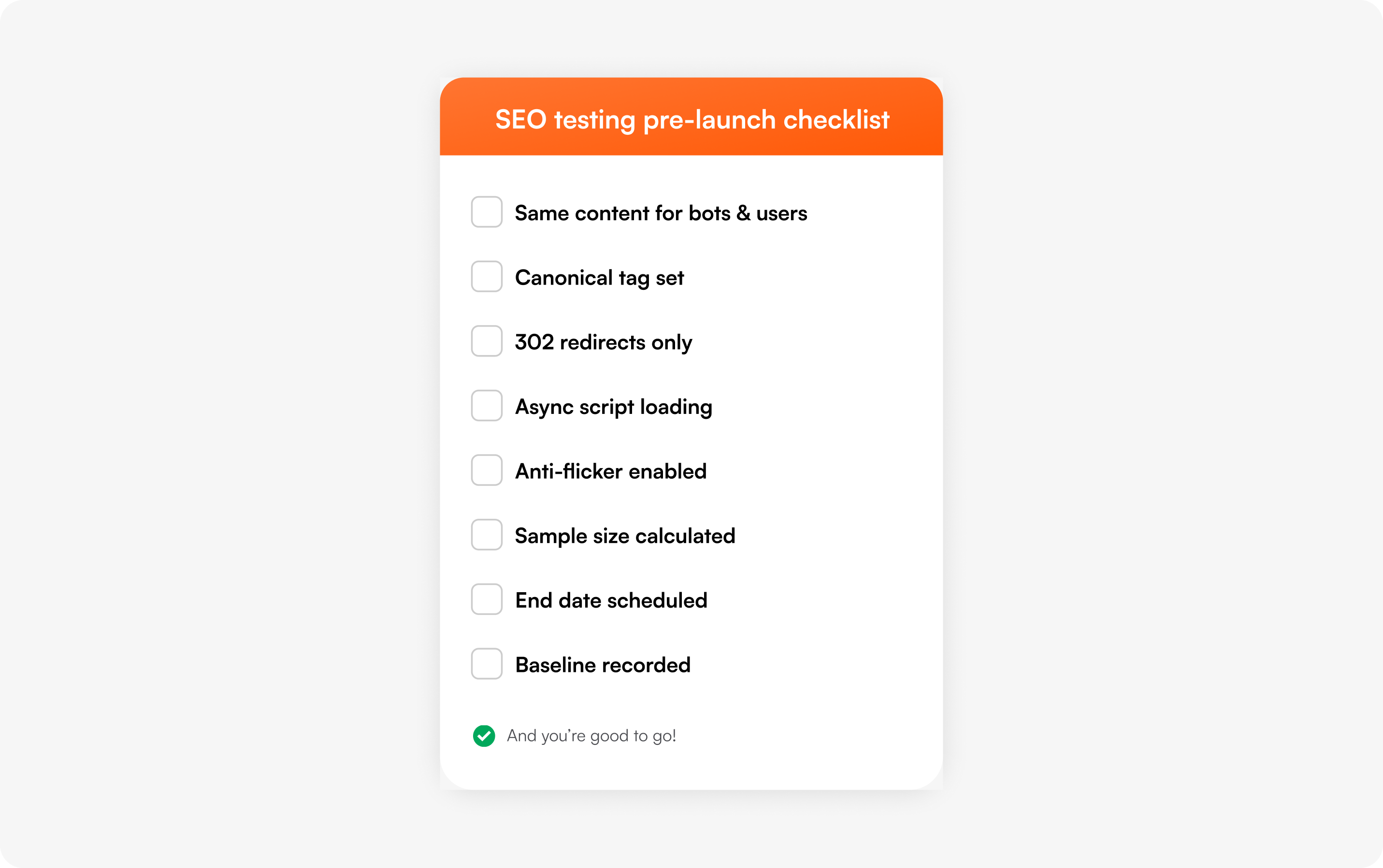 Before launching any A/B test on a page with organic traffic, work through this list: