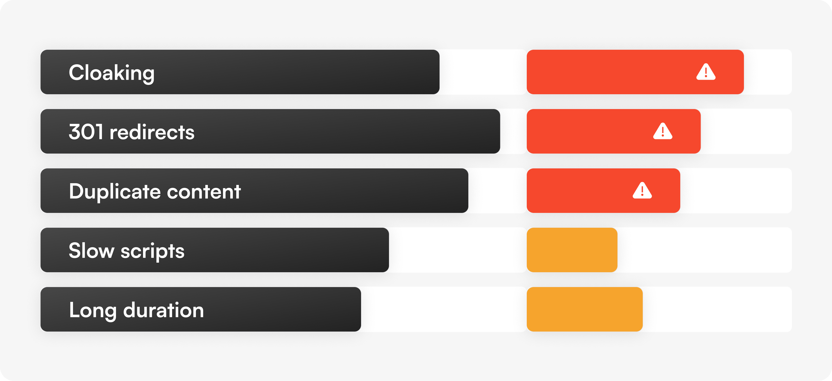 Why it hurts SEO: Google has stated explicitly that long-running tests may be interpreted as an attempt to deceive search engines — particularly when one variant is being shown to a large percentage of users. This can trigger manual review.