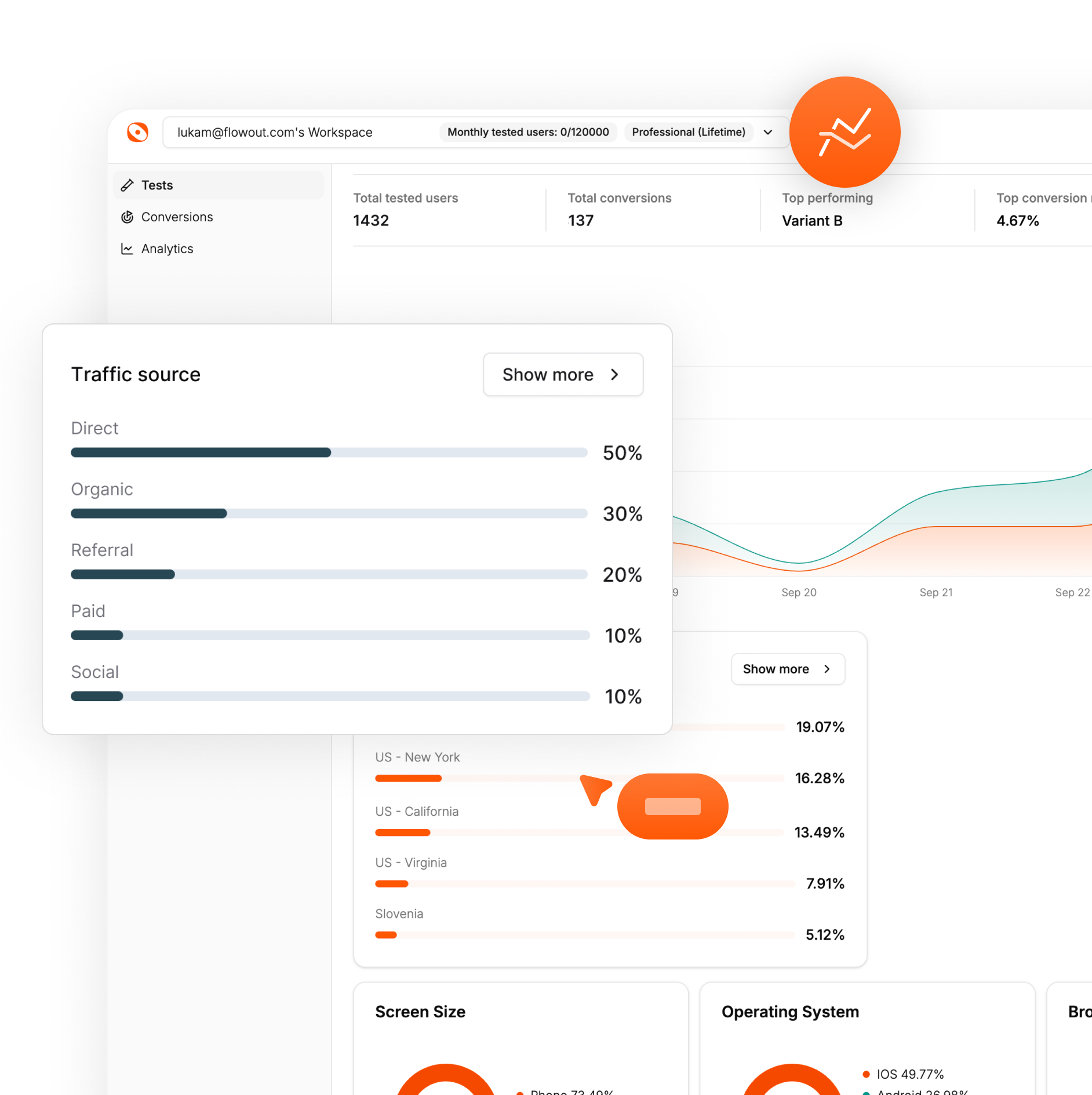 Segment your audience based on different criteria, including geolocation, device type, operating system and browser. Our dashboard provides audience segmentation capabilities, enabling you to address specific user groups and tailor your A/B tests for maximum effect.