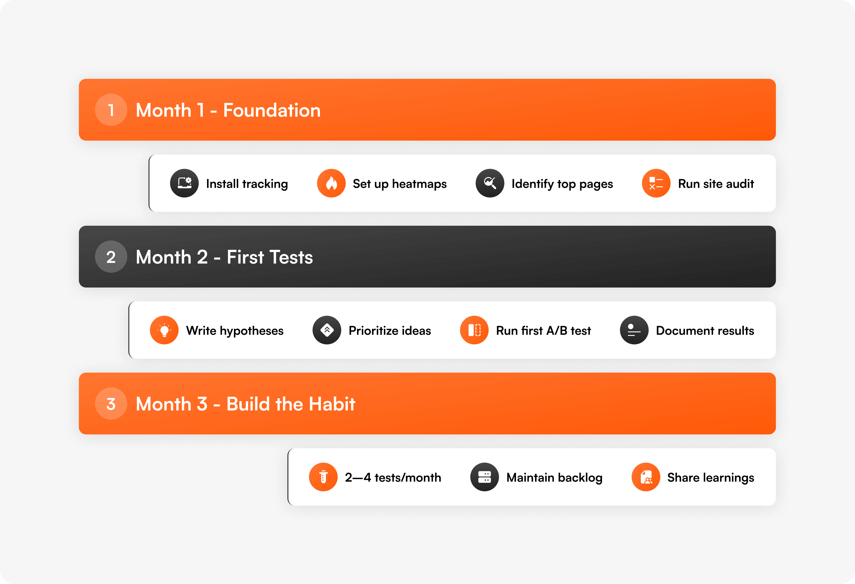 CRO is a continuous process, not a checklist. User behavior changes, markets shift, and your product evolves. The companies that see the greatest returns from CRO treat it as an ongoing discipline — running iterative testing cycles month after month.